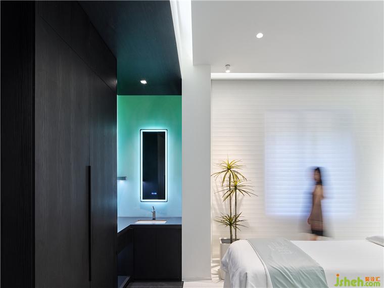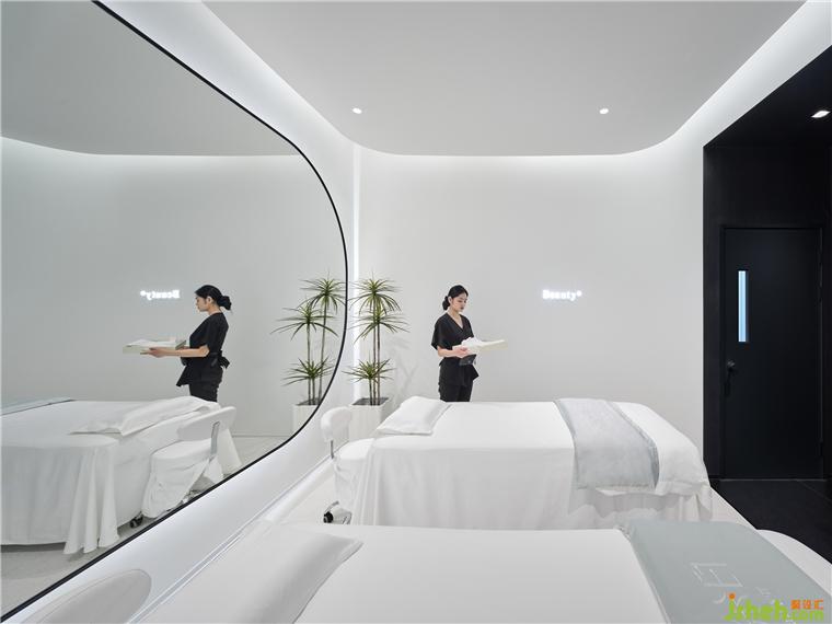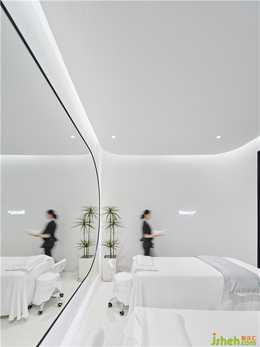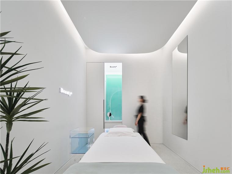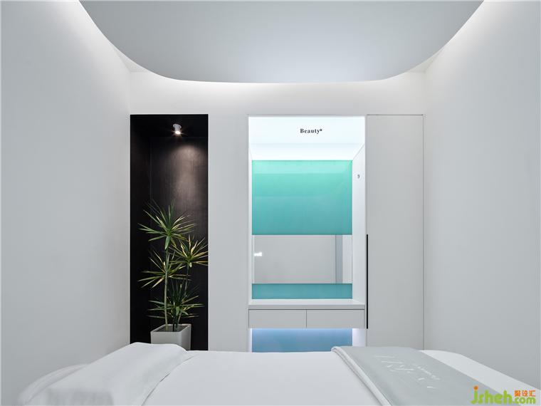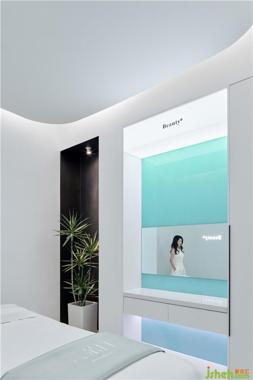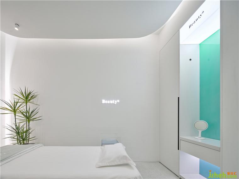 療膚中心設(shè)計(jì)利用色彩和材質(zhì)強(qiáng)化功能分區(qū),增大房間視覺格局。智能控制模塊設(shè)計(jì)了準(zhǔn)備、體驗(yàn)中、體驗(yàn)結(jié)束等不同模式的燈光亮度,并可以對音樂、投影、空調(diào)等進(jìn)行調(diào)節(jié)。