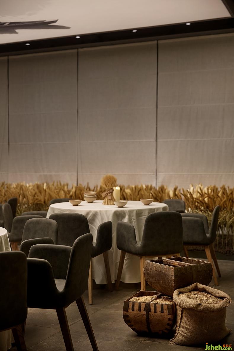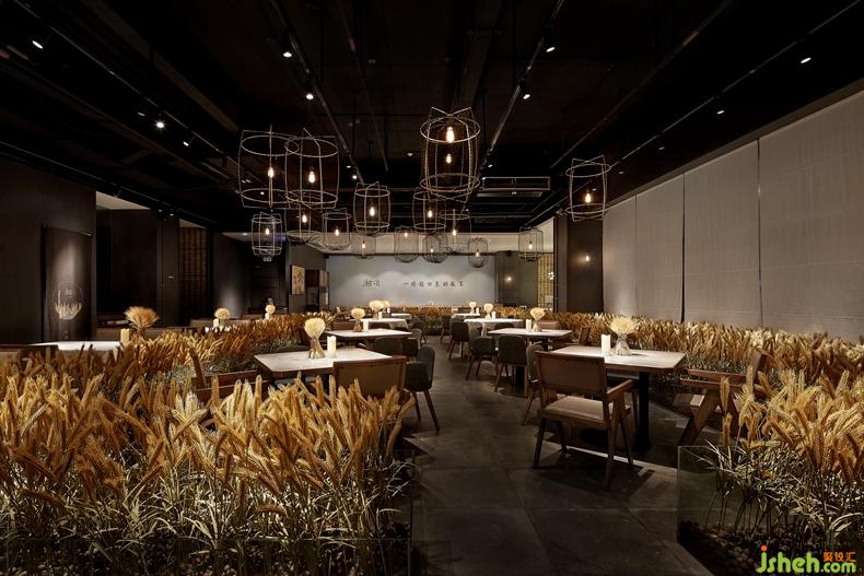 餐廳內高仿真的稻田錯落分布,將餐桌環(huán)繞其中,樸實低調的灰磚地面襯以專業(yè)的燈光設計,舉目望去宛若置身秋日豐收現(xiàn)場,充滿自然美感。稻穗的形態(tài)、質感與肌理上最大程度尊重原型,以期構筑秋季豐收的金黃稻田,喚醒心中對本土生活的記憶和想象。