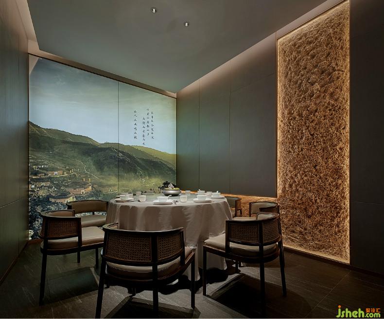 每一盞小吊燈均由白色亞克力設計制作而成的迷你圍屋,強化客家文化元素的辨識度。餐廳設計圍繞著餐桌的明檔整潔明亮,將美食烹制過程完全展現(xiàn)在食客眼前。從細小的餐桌陳設布置,到餐具設計、餐廳內(nèi)的墻面裝飾品等均經(jīng)由設計師考量,以細節(jié)動人。