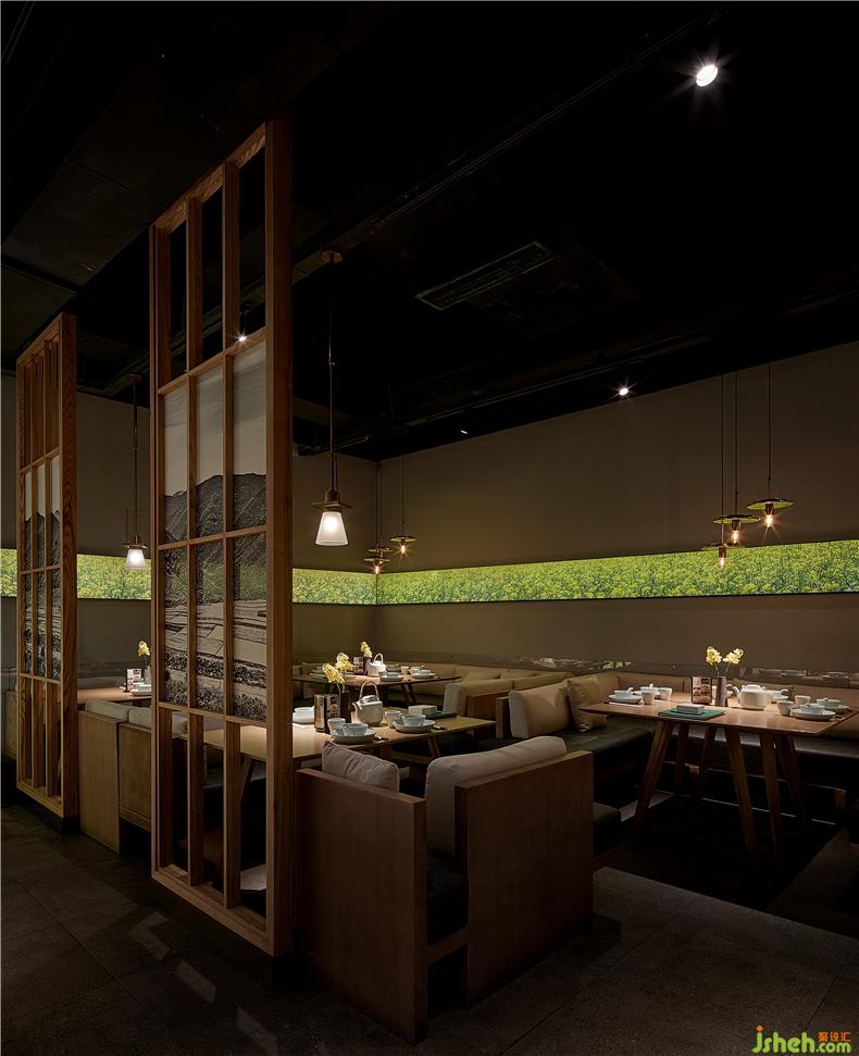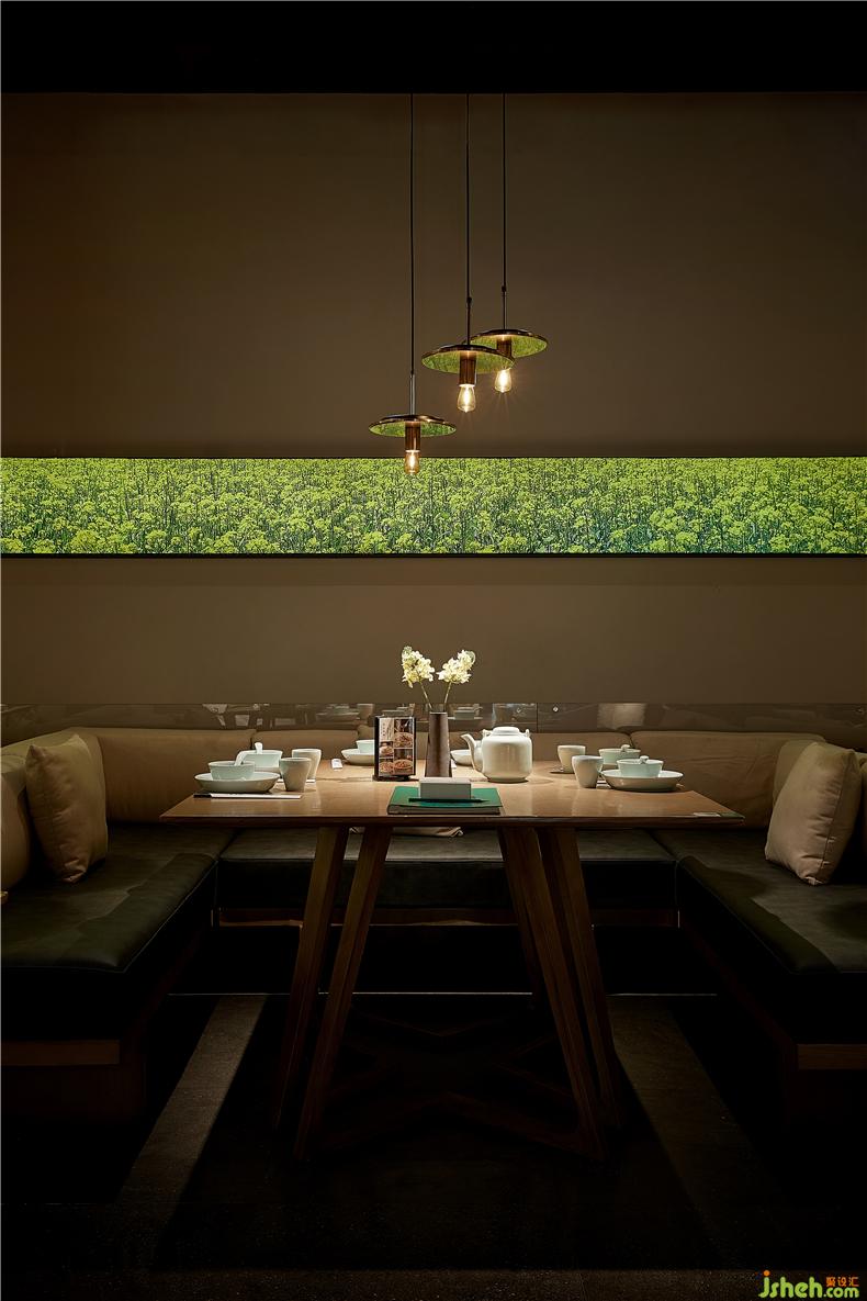 開放式明檔是店內(nèi)重要的展示舞臺,每一個灶臺的廚師都是主角。上方的紗幔上“鮮、熱、真、火、快”五個大字映入眼簾,道出衡陽小炒功夫的精髓。明黃色的吊燈組渲染干凈溫馨的餐廳氛圍,而蒸騰的鍋氣試圖喚醒你回憶里故鄉(xiāng)的裊裊炊煙,廚師烹飪過程一覽無余,菜籽油混合小炒肉的香氣撲鼻而來,塑造出餐廳的獨(dú)特氣息,勾人食欲,餐廳設(shè)計使食客可以充分領(lǐng)略到衡陽小炒“食”與“境”的美妙關(guān)系。