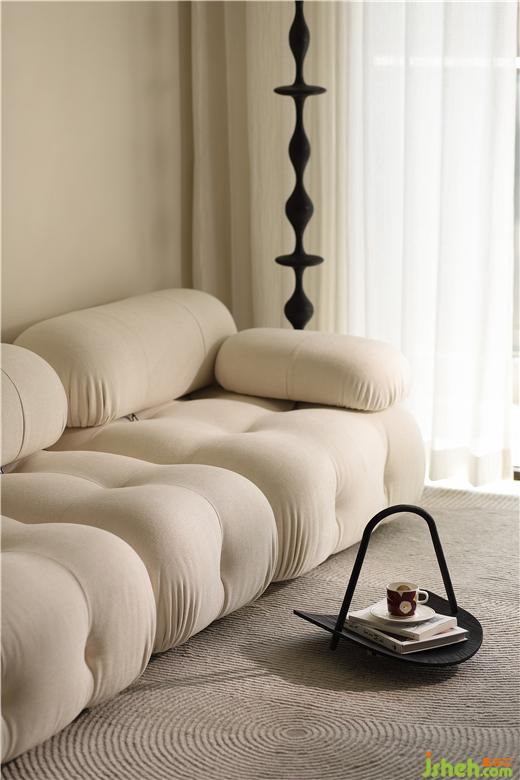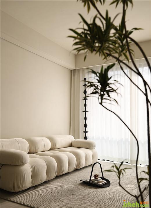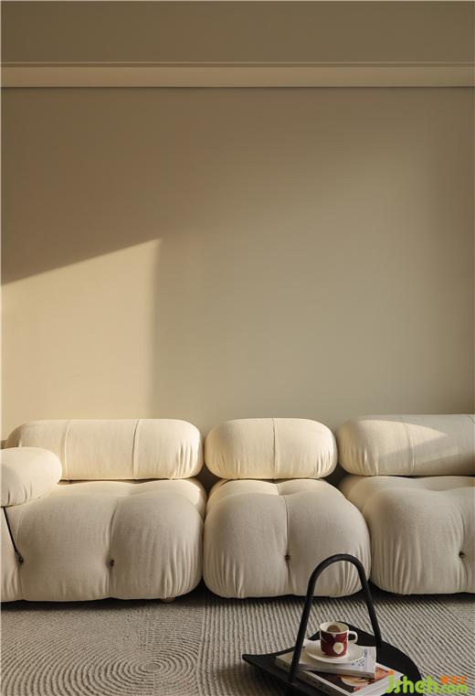 客廳區(qū)域,墻面微水泥背景延用餐廳背景序列式的排列設(shè)計(jì)手法,也稱斯卡帕似的設(shè)計(jì)手法,宛如生活一切有序卻驚喜的進(jìn)行,沙發(fā)背景也設(shè)計(jì)了線性燈脫離墻面與天花之間的硬收口。我們希望用簡(jiǎn)潔溫暖的設(shè)計(jì)語(yǔ)言,為屋主創(chuàng)造出理性實(shí)用和自然美學(xué)的相融空間。