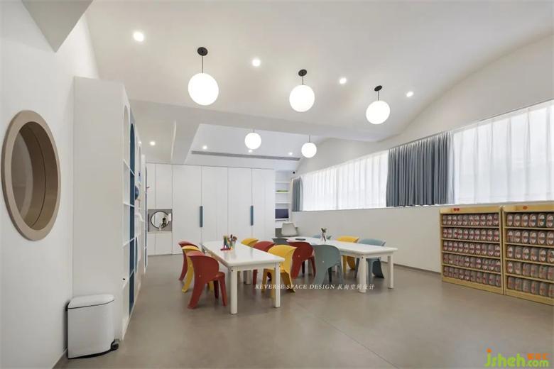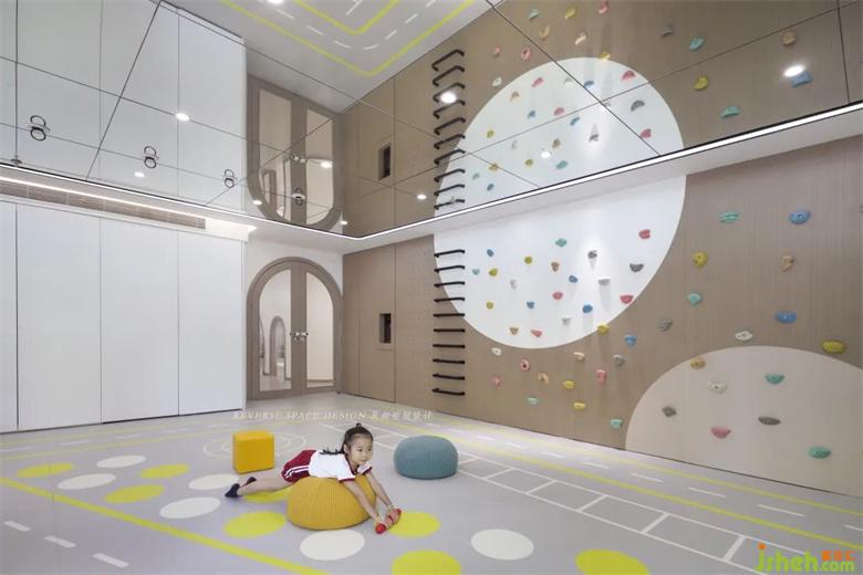 頂面采用鏡面設(shè)計(jì)擴(kuò)展空間層高,托育中心設(shè)計(jì)一整面攀爬墻,整圈跑道和地面趣味拼圖,讓教學(xué)有更多可能性。幫助發(fā)展幼兒的協(xié)調(diào)性和敏捷性,增強(qiáng)身體素質(zhì)和自信心。