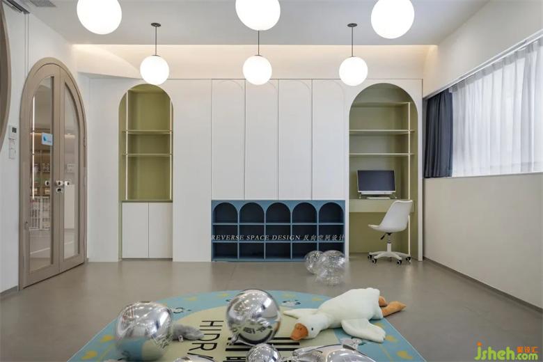 整體空間色彩搭配豐富。托育中心設(shè)計以色彩色感訓(xùn)練為主體,讓幼兒在快樂中探索,幫助發(fā)展幼兒的想象力和創(chuàng)造力,用不同元素去探索美。