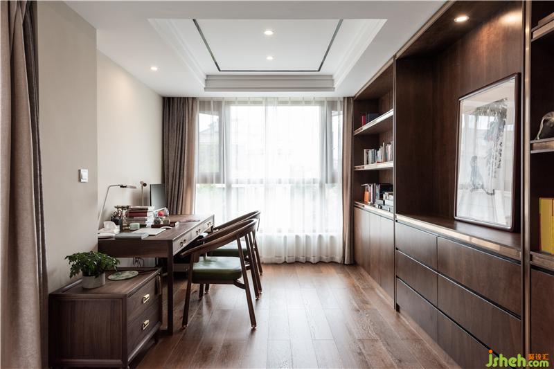 書房的設(shè)計我延續(xù)了“圖書館”的概念,營造一個明亮輕松的閱讀空間,讓家人在此享受閱讀的樂趣。