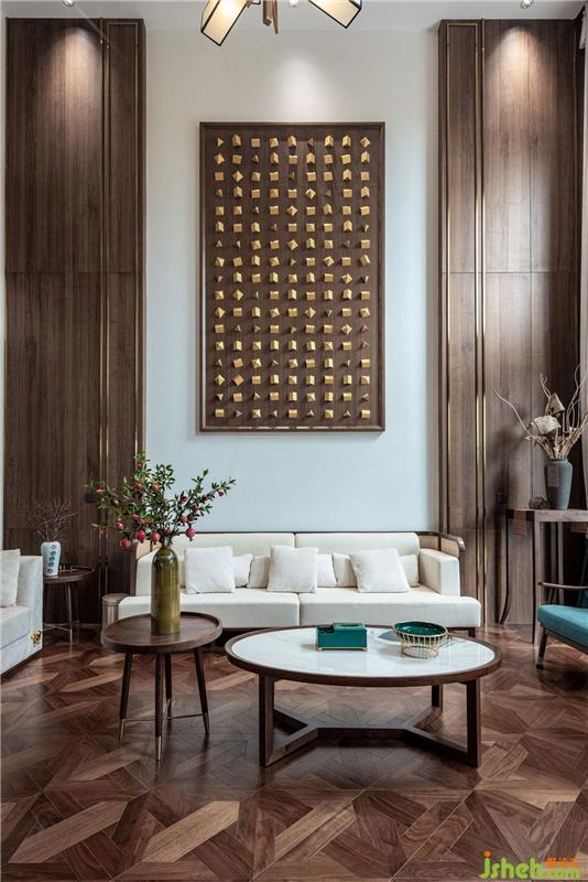 沙發(fā)背景裝置畫,作突出東方筆觸;