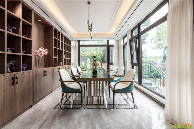 古銅幾何形狀與胡桃木飾面,意旨沉穩(wěn)是空間的主體精神。