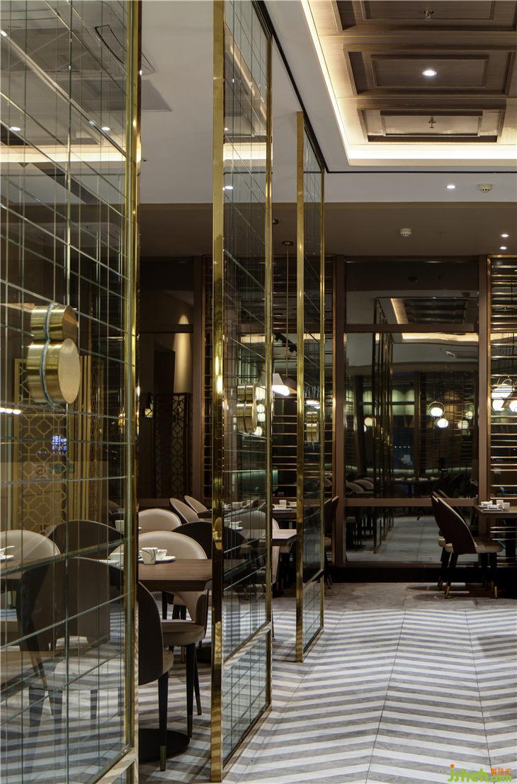 大廳區(qū)域+環(huán)繞式布局把餐廳分為外圈和內圈,中間環(huán)形流線使服務流線簡單便捷