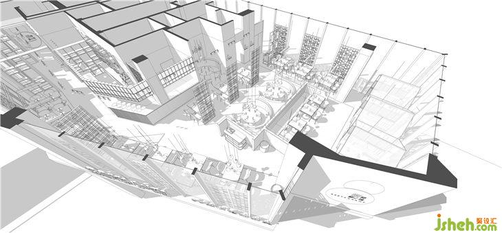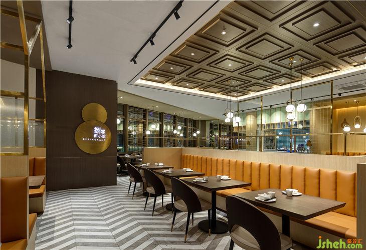 原圖建筑中間的核心筒處在整個(gè)餐廳最核心的中間位置。很尷尬的把空間均分為二。布局上利用廚房和吧臺(tái)吧畸形的角落空間利用起來?;銥檎R园膳_(tái)為紐帶,把廚房和就餐區(qū)的功能分開,把服務(wù)聯(lián)系在一起。