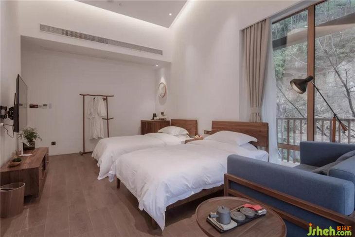 客房的一角充滿書香氣息,讓人想起古人“矮紙斜行閑作草,晴窗細乳戲分茶”的閑適生活。