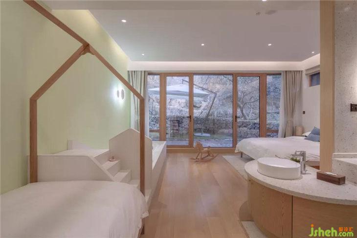 公共區(qū)域則設(shè)有露天恒溫泡池、咖啡館、小酒吧,還有一個(gè)長(zhǎng)生書局,也有高低錯(cuò)落的開放式觀景露臺(tái)。民宿內(nèi)亦設(shè)有餐廳,請(qǐng)的是松陽本地的廚子,燒制出的多是松陽當(dāng)?shù)仫L(fēng)味菜,家常的烹飪方式讓人倍感溫馨。