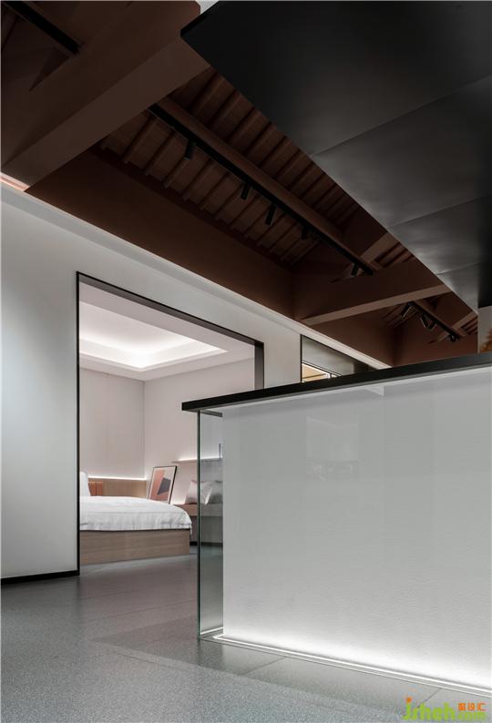 本項目保留了古建筑的韻味,蘇州展廳設(shè)計通過對局部空間的當代處理后,形成具有古建筑韻味下的當代藝術(shù)空間??臻g植入的“光與絲綢”的裝置,是對產(chǎn)品文化,絲綢文化的提煉與表達。突破空間的框架特有的桎梏,通過視覺與觸感,塑造一個理性邏輯的意向空間