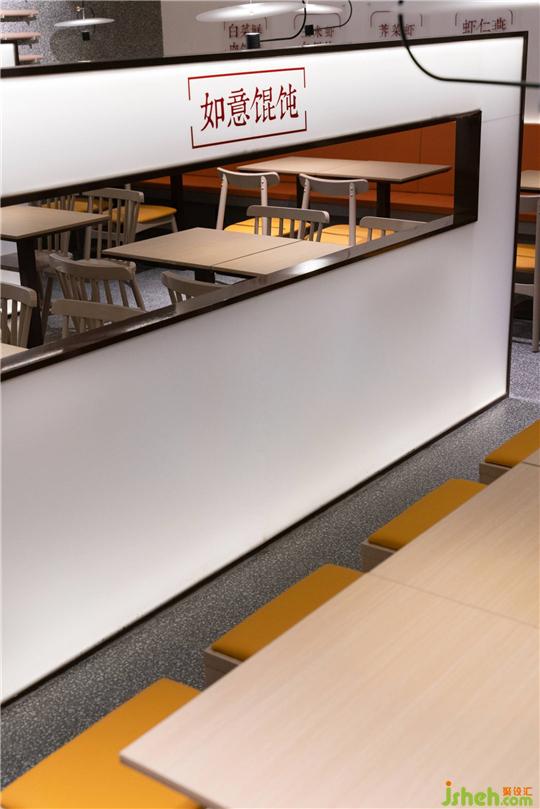 入口處,石磨在麥田里磨著新鮮的麥子,表達(dá)了“如意餛飩”秉持的精選食材原則,“全球優(yōu)質(zhì)高筋小麥”“真空打粉筋道爽滑”是餛飩皮的特點(diǎn)和要求。蘇州餐飲設(shè)計(jì)而墻壁上的柜體便是給準(zhǔn)備包好的餛飩的展示空間,讓客人看得見,吃得著。