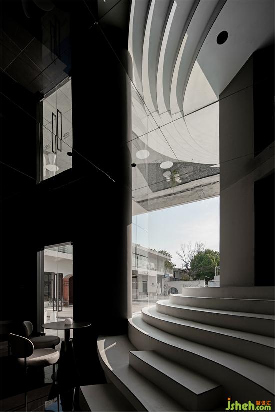 光線以不同的姿態(tài)進入室內(nèi),與深黑色鏡面配合,造就了空間的深度和層次感,通過光與影的交織為其塑造了獨特的空間性格。