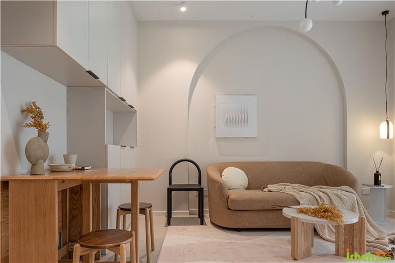 項(xiàng)目名稱老破小爆改中古風(fēng),拱形解決梁柱問(wèn)題