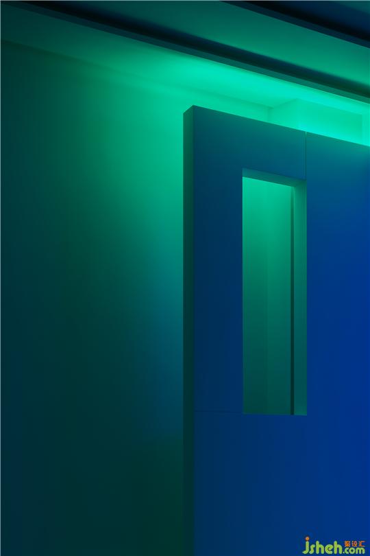 二、 小書吧/小憩區(qū)。墻面白色的懸浮書架上,羅列著近些年設(shè)計師自己閱讀過并覺得值得購買的書籍,還有很多書籍在不斷的補充進來。書架對面的弧形白色沙發(fā)即是坐定并閱讀的區(qū)域。為了使閱讀者的注意力更加集中,我們?nèi)趸诵〔鑾椎拇嬖?,用透明的材質(zhì)實現(xiàn)了它只放一杯咖啡或茶、不令閱讀者分心的功能。坐在沙發(fā)上向左看,可以看到對面樓上的空中花園,真是自帶好景、可以讓人浮想聯(lián)翩的小角落。