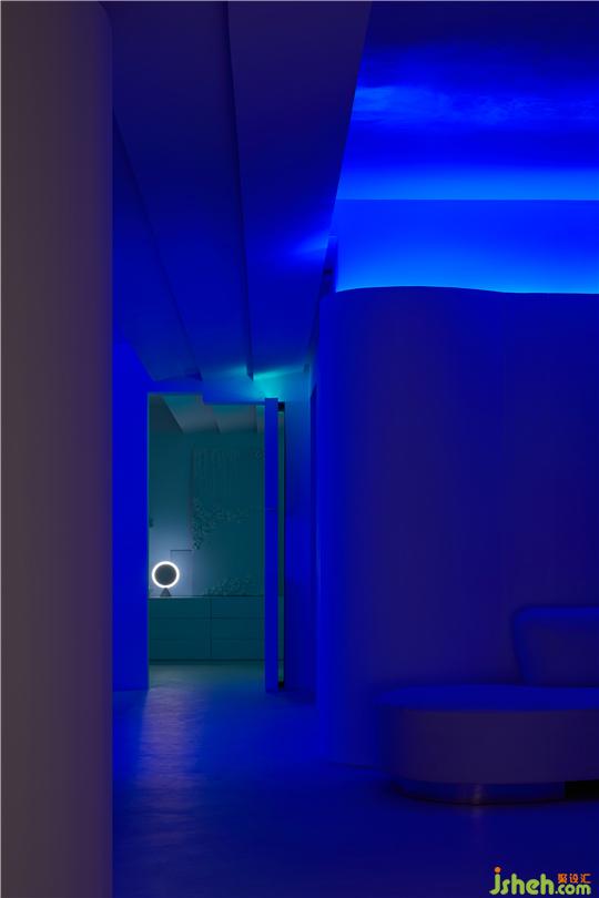 辦公室設(shè)計(jì)以波紋不銹鋼和落地發(fā)光球體作為展示媒介,通過藝術(shù)的陳設(shè)手法,形成“月落水面”的奇妙幻境。作為堅(jiān)硬的金屬材質(zhì),波紋不銹鋼在光影和波紋的共同作用下,拋去合金體硬朗冰冷的“假面”,溫柔地圍繞在似真月落地的球體周圍,這美感,仿若在空間里輕撫了一層面紗,冰涼、沉靜、柔和、夢幻,令人沉醉、浮想聯(lián)翩。