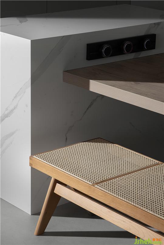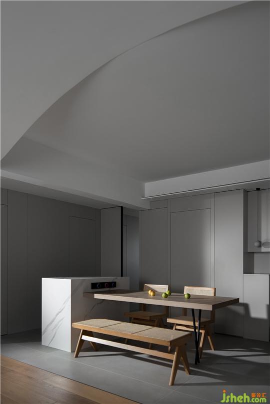 空間原始結構為兩居室空間,客餐廳為長廳,洛陽裝修設計在研究承重結構后,對原始結構進行了大面積的改造。由于客廳及陽臺景色為洛河光景,我們就拆除了一個臥室與客餐廳打通,來增大采光和景觀面。同時,考慮到業(yè)主一人居住,工作日均在單位就餐,只有周末偶爾做一些簡餐,所以我們將中廚和衛(wèi)生間縮小,增大公共空間面積,保留了一間大臥室;而在客廳區(qū)域,我們摒除常規(guī)會客沙發(fā)擺放形式,以地臺結合坐墊靠包的靈活方式,滿足不同場景下的生活格局;在靠陽臺的部分,我們空出大量面積,凸顯空間的開闊性,賦予空間無限可能:女主人可以健身、瑜伽、觀影、看書,坐,臥,行,走,均可達到無拘無束的自由品質空間狀態(tài)。