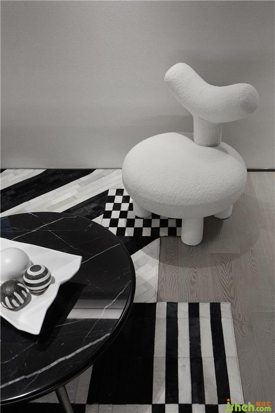 空間承載著我們對于生活,對于家,對于心中凈土的期許。本次項目更是如此,多元化的使用階段,代表著空間的共融性,而針對空間主要使用者業(yè)主的特性上,我們大膽突破,從布局到色彩,從選材到藝術(shù),我們力求做到極致。整體作品就像一副藝術(shù)畫作,淡淡的筆觸打底,素色空間干凈整潔,不嬌柔不造作,如清流過膝,不著痕跡;繼而筆墨漸濃,意境漸生,意大利經(jīng)典家具搭配組合,從客餐廳到臥室,基調(diào)完整和諧,輪廓初成;再來就是黑白經(jīng)典配色的原創(chuàng)地毯和原創(chuàng)畫作,將空間藝術(shù)氛圍推向極致;而最后那一點姣紅,如畫龍點睛,暈染荷塘,空間氣質(zhì)躍然紙上。