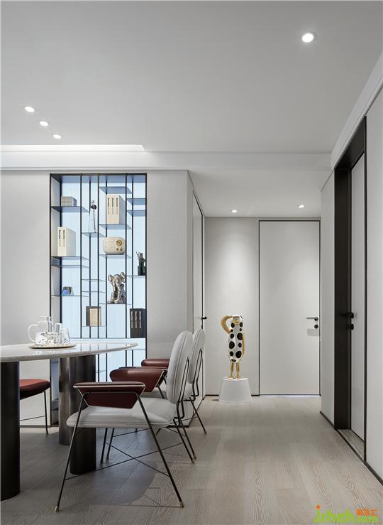 選材在滿足設計需求的前提下,著重從環(huán)保和經濟等方面著手。洛陽家居設計地面除衛(wèi)生間廚房生活陽臺外,整體選擇多層實木地板通鋪,增大空間延伸感和視覺感,淺木色的顏色也在采光相對較差的空間中有提亮空間的效果;大面積墻面選用米灰色肌理壁紙,純色的壁紙,搭配一定紋路的肌理,讓空間干凈整潔,同時又更有質感;全屋創(chuàng)新性的采用極簡窄邊框門,游艇板材結合優(yōu)質鋁制金屬框架,線條感極強的門框搭配白色的門板,與墻體結合成一平面,設計感極強。通電玻璃的選用也極具創(chuàng)意,滿足空間通透性和縱深性。
