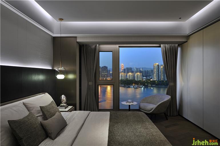 福州豪宅設(shè)計主臥延續(xù)輕奢基調(diào),以木質(zhì)墻板和金屬的碰撞營造空間的藝術(shù)感和精致感,并以不張揚(yáng)的色調(diào)打造靜謐、舒適的空間氛圍。