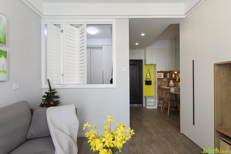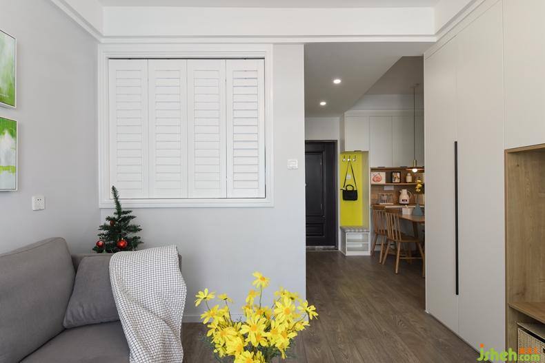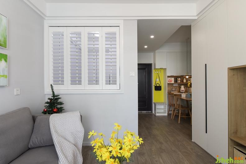 可以看到百葉窗了,是折疊式的,原本計(jì)劃是嫩黃的顏色,但是女主擔(dān)心色塊太大,這點(diǎn)設(shè)計(jì)師沒(méi)堅(jiān)持了,有時(shí)候陳道貴比較強(qiáng)勢(shì),但是總體還算是容易妥協(xié)的吧。
