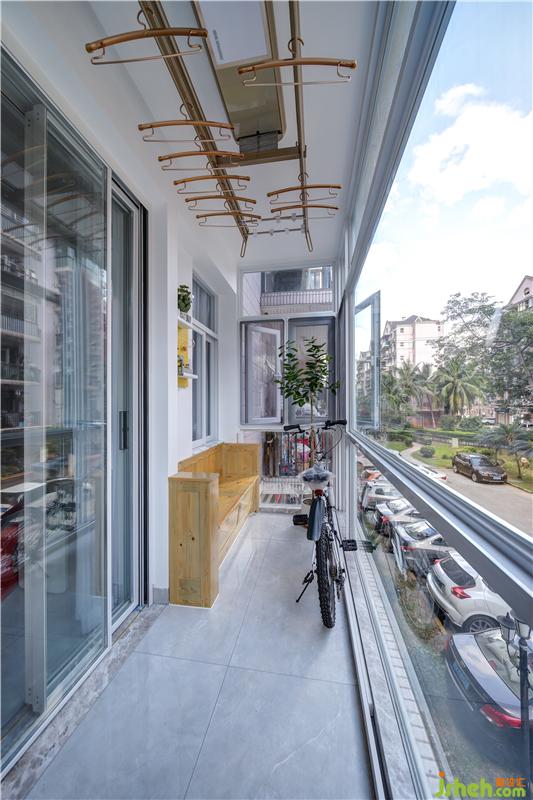 業(yè)主父親和他本人都愛抽煙,設(shè)計(jì)師考慮儲物和長輩的舒適性,在陽臺設(shè)置了一個(gè)小矮凳,方便又實(shí)用。裝修公司