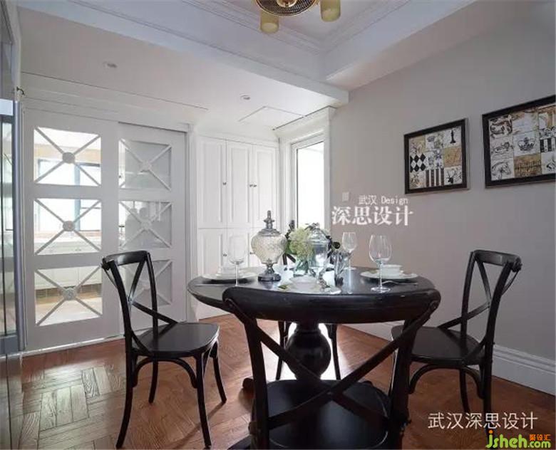 設(shè)計(jì)師在注重細(xì)節(jié)的精致感和材質(zhì)的品質(zhì)感的同時(shí),更注重空間優(yōu)雅知性的文化格調(diào)的經(jīng)營與把握。在設(shè)計(jì)手法上,整體設(shè)計(jì)簡練、優(yōu)雅、沉靜,空間色彩以輕咖色調(diào)配以深木色,表達(dá)空間平和內(nèi)斂的氣質(zhì),精致的美式線條豐富了空間的華美感,深木色的實(shí)木地板選擇了簡潔的拼花圖案,沉穩(wěn)中又包含了變化。