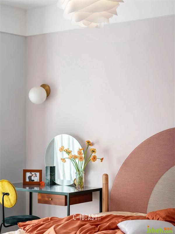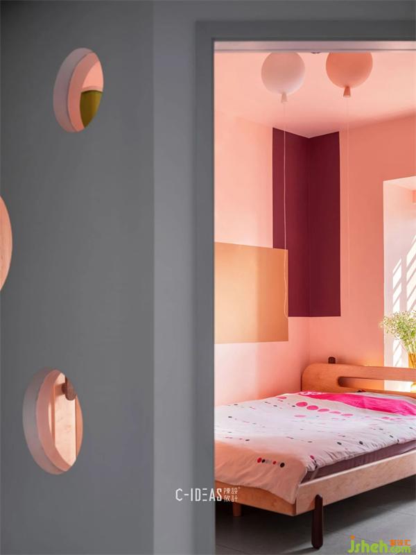 小寶貝的臥室,自然是全屋最粉嫩可愛的處所。書房與兒童房相鄰的墻壁上挖出三個(gè)圓圓的月亮窗,既能方便父母照看寶貝,又增添了小小空間的延伸感趣味性。