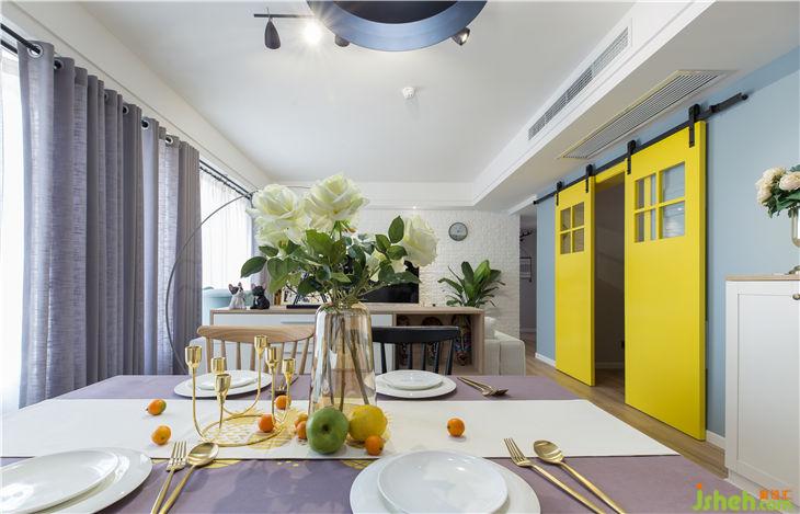 2、書房設(shè)計成靈活變動空間,設(shè)計兩扇外掛谷倉門,使客餐廳與書房連成一塊,空間更加寬闊,采光也得到最大的補充。