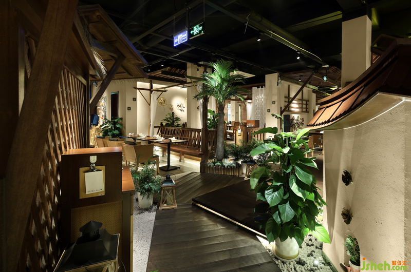 綠色植物點(diǎn)綴其中,原木質(zhì)感的村落營(yíng)造東南亞風(fēng)情本餐廳,開(kāi)敞式設(shè)計(jì),獨(dú)特的東南亞小木屋配合綠植色彩營(yíng)造獨(dú)特的異域風(fēng)情,非常不錯(cuò)的餐廳設(shè)計(jì)!