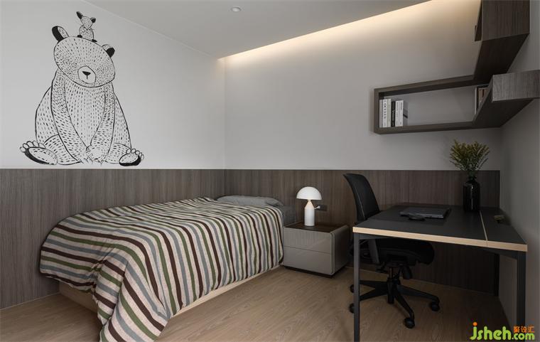一樓為公共空間,提供家人和朋友娛樂、餐飲和交流功能。別墅設(shè)計(jì)開放式的設(shè)計(jì)增加了空間的氛圍和寬敞感。深色木皮墻和米色石材吧臺(tái)形成一道主題,回字型的動(dòng)線使空間更通透,并帶有一些儀式感。浴廁分離的設(shè)計(jì)滿足主人和客人的需求,色調(diào)上融合自然和諧的氛圍,與窗外風(fēng)景融為一體,讓人能以優(yōu)雅的姿態(tài)與自然共處。
