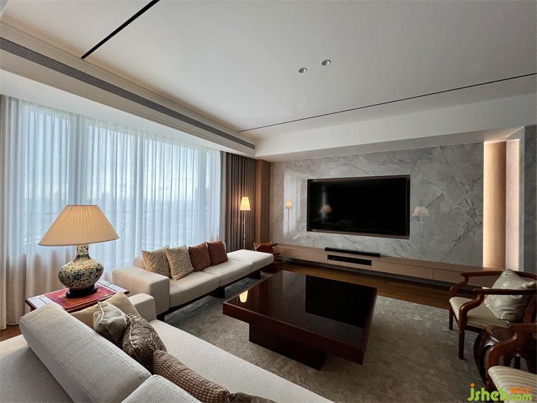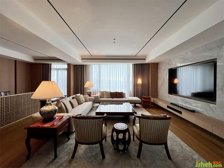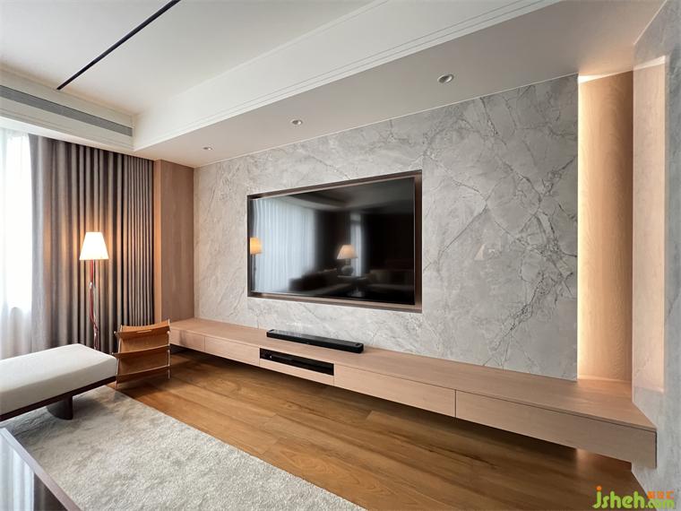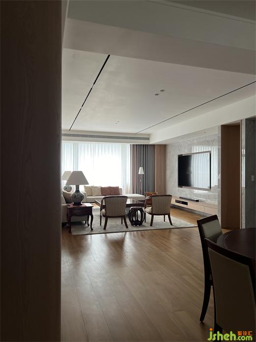 在公領(lǐng)域區(qū),將客廳.餐廳.廚房及休息區(qū)等空間,排布在橫向軸線上,營造出空間的景深,也讓雙向空氣陽光能夠流通在每一個角落,廚房二側(cè)的門片設(shè)計,豪宅設(shè)計滿足開放或私密的需求,視覺上也讓整個公領(lǐng)域空間得以無限延展,將二邊窗外風(fēng)景盡收眼底,每當(dāng)黃昏,從窗外撒下的夕陽余暉,照映在室內(nèi)的實木地板上,反映出家的溫暖與舒適。