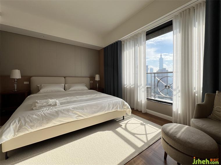 私領(lǐng)域則由雙主臥空間組成,一主臥套房連接衣帽間及浴廁,另一主臥套房則可合并書房及單獨的浴廁,實踐男女主人雙主臥的功能,在公私領(lǐng)域的動在線,采雙動線設(shè)計,除了走道動線外,在客廳書房背墻上設(shè)計了一隱藏暗門,可連通到主臥讓整體空間在使用上更加便利。