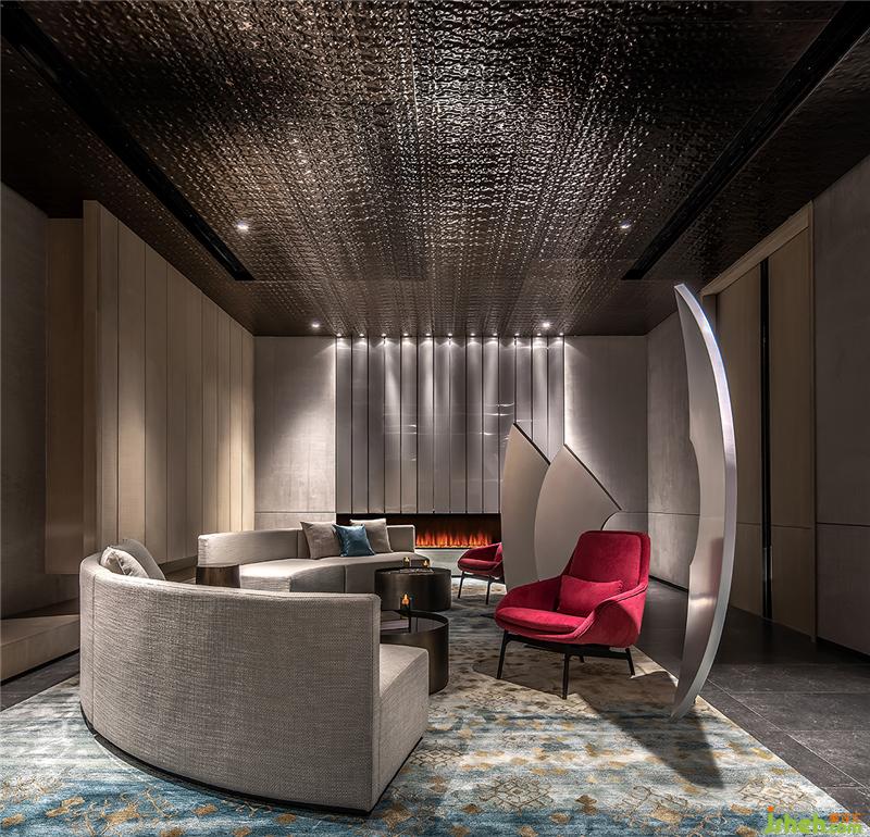 會所過道同樣遵循這一原則,透空處理一方面引入光線進入過道,另一方面削弱過道的感覺。會所設(shè)計
