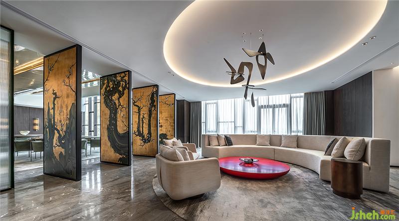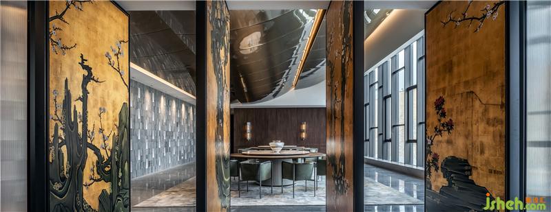 探索一開始就希望這個(gè)空間是個(gè)場(chǎng)景化的空間,有兼具東方元素的雍容華貴感,又能將未來感相融合,就像電影里的場(chǎng)景一般,最后達(dá)成了期望中的效果。會(huì)所設(shè)計(jì)