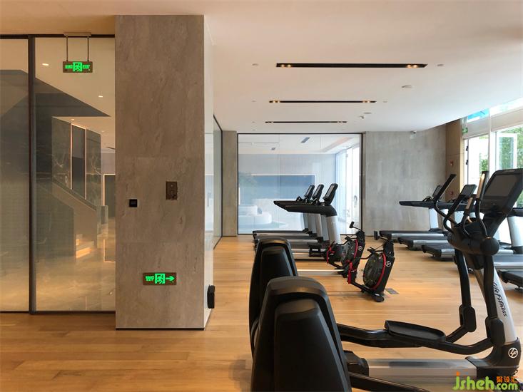 同時設(shè)計將輕奢風(fēng)中融入柔和的色彩,軟裝與科技設(shè)備,燈光結(jié)合,給予空間一個前瞻而舒適的感覺。健身會所設(shè)計為了更好的激勵客人健康運(yùn)動,強(qiáng)而有力的幾何線條貫穿了整個空間,這些線條讓人聯(lián)想到肌肉線條,強(qiáng)化了整體設(shè)計概念中的運(yùn)動感與力量感。
