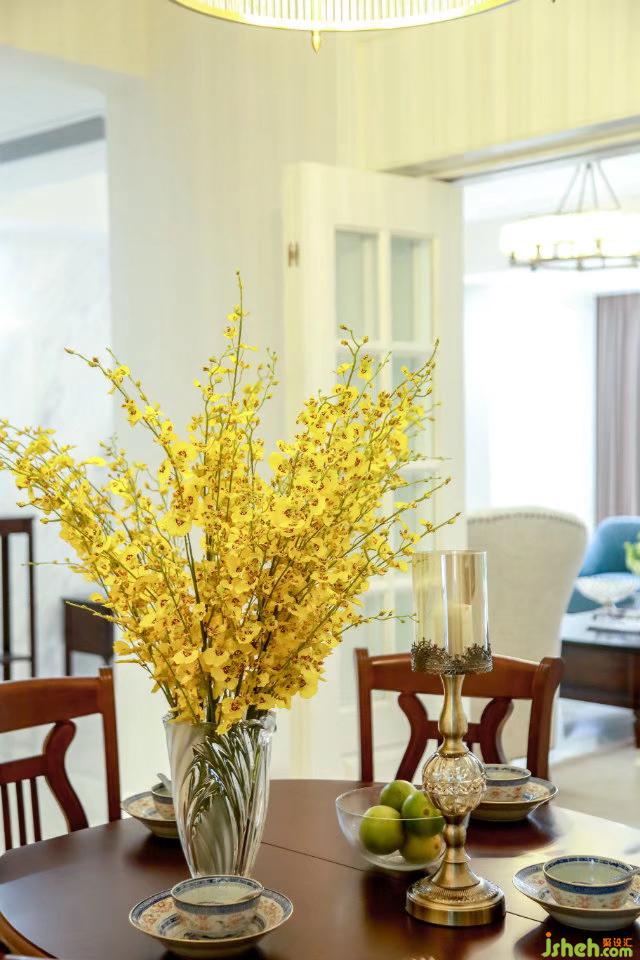 通過折疊門餐廳可以看到花園,甚至花園外面的小區(qū)綠化,所以折疊門絕對是放大空間讓空間變魔術(shù)的一大法寶。