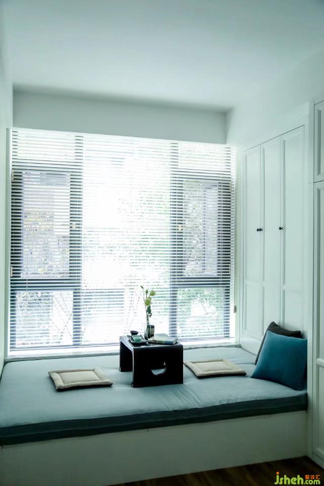 次臥設(shè)計公司采用1.5米寬400mm高榻榻米,剩下的空間做了500mm深度的整面墻儲物柜,榻榻米上面淘寶定制5cm厚度軟墊,舒適度剛剛好,空間利用率也達(dá)到最高。一方面滿足業(yè)主媽媽對超大儲物空間的需求,同時也多了一個休息的空間。巧遇秋季拍照,滿院子的銀杏,點(diǎn)綴的一屋子的詩情畫意。因此設(shè)計公司特別推薦窗景較好的臥室采用百葉簾,陽光曬進(jìn)屋的時候可以自由調(diào)節(jié)光線角度,同時一點(diǎn)也不影響觀景效果。天氣好的時候還可以陪同家人放上小茶幾喝茶聊天。