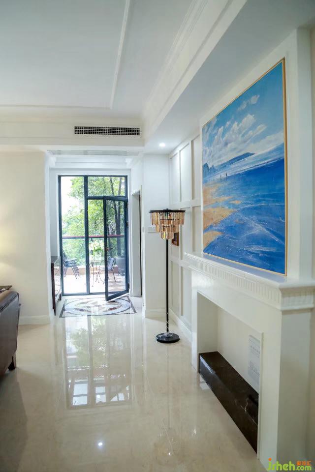 從客廳看入戶以及花園,推拉門外面的景觀是家里四季最好的風(fēng)景。夏天可以一-家人坐在花園喝茶聊天,吹自然風(fēng)。壁爐.上面定制的油畫是屋主最喜歡的海景,她說看到這幅畫會覺得心情很好,我想選畫有很多種,有為了收藏價值,有為了追求風(fēng)格統(tǒng)一協(xié)調(diào),而看到畫談心情應(yīng)該是最有意義的一種吧。