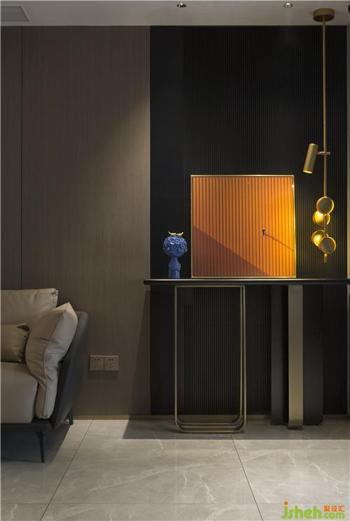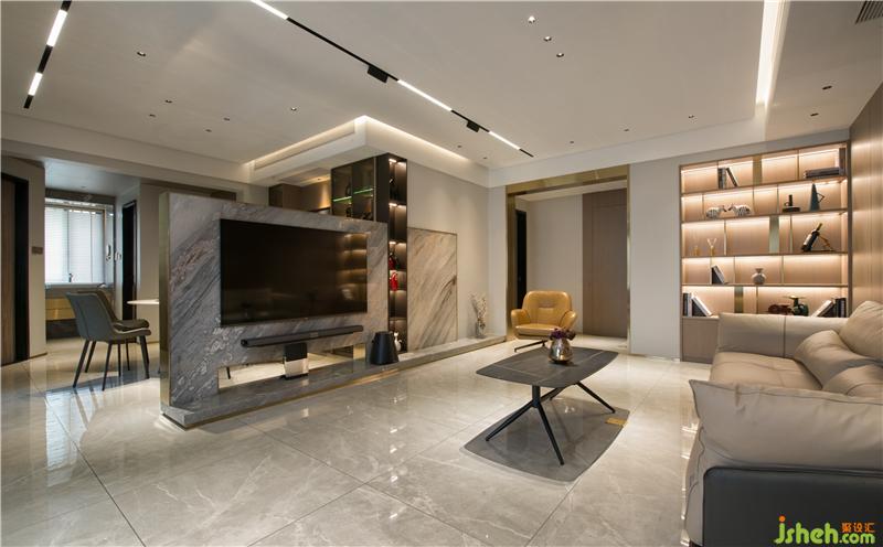 主要材料:藍(lán)金沙大理石、木飾面、藝術(shù)漆、鈦金