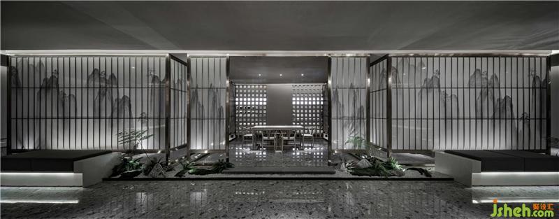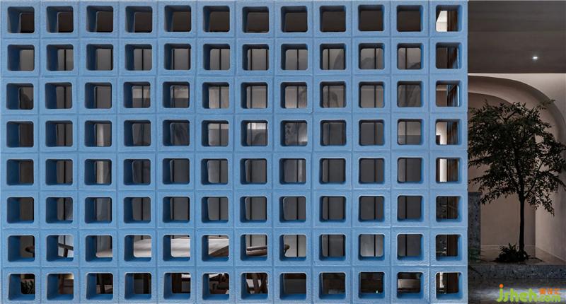 主要材料:水磨石 不銹鋼格柵 空心磚 絹紗 藝術(shù)漆