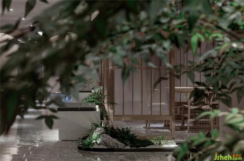 將場(chǎng)景化品茶與商業(yè)空間完美共生,形成洽談?dòng)重S盈的文人精神世界。古人常于自然山水處擇一居所,安放身體與靈魂。但如今,不僅要棲于靜謐,靜坐飲茶看窗外車水馬龍、人來(lái)人往,居于繁華。