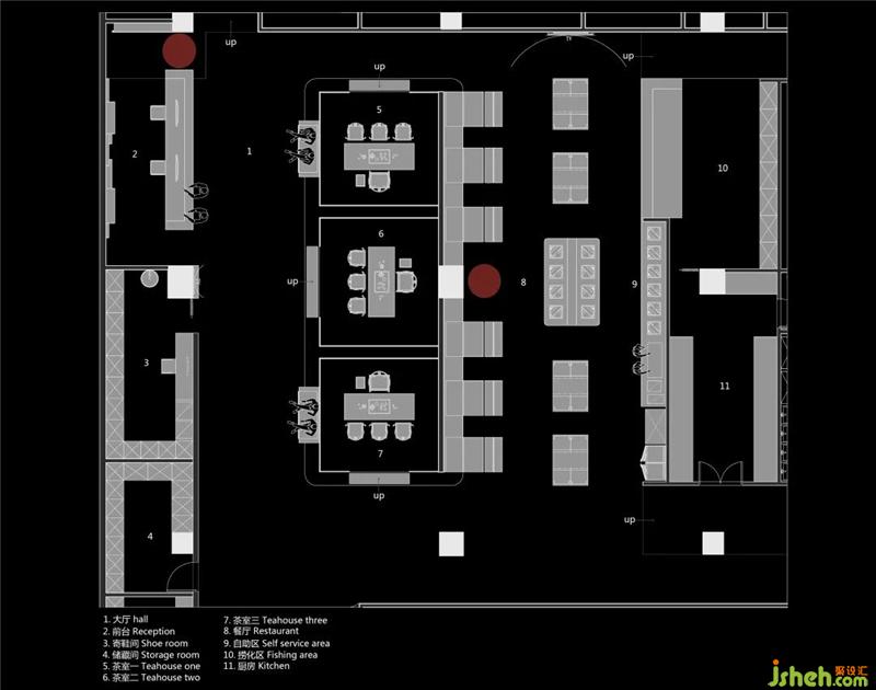 餐廳與茶室隔斷區(qū)域的鏤空空心磚陣列開(kāi)來(lái),通過(guò)每個(gè)孔洞的穿透將茶室區(qū)域的水墨山水栩栩如生的寫(xiě)照在餐廳的每個(gè)空間縫隙中,即強(qiáng)調(diào)了細(xì)節(jié)的品質(zhì),也體現(xiàn)了Three Yard的文化特征,帶給人大氣磅礴的觀感又不失思緒的延展福州養(yǎng)生館設(shè)計(jì)。