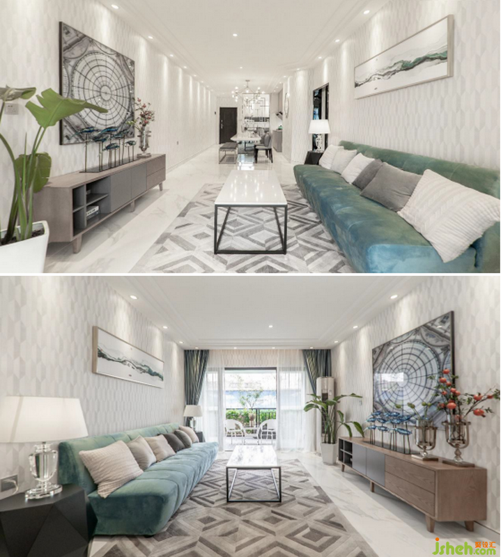 作為文藝復興的發(fā)源地,意大利對藝術的呈現(xiàn)多元且風雅,在A 戶型的設計中,教堂圓頂壁畫與山水墨畫就是極為巧妙的搭配。在室內(nèi)設計師的創(chuàng)作中,也會體現(xiàn)出內(nèi)斂愜意的意式魅力,不過不同于藝術的古典, 整體設計上,是更具年輕活力與時尚大氣的,幾何墻面與低碳、清新的墨綠沙發(fā)、純實木家具系列、綠植擺飾所呈現(xiàn)的就是如此。