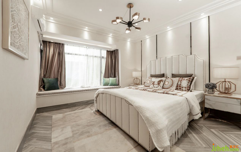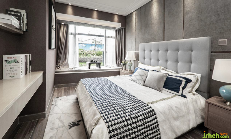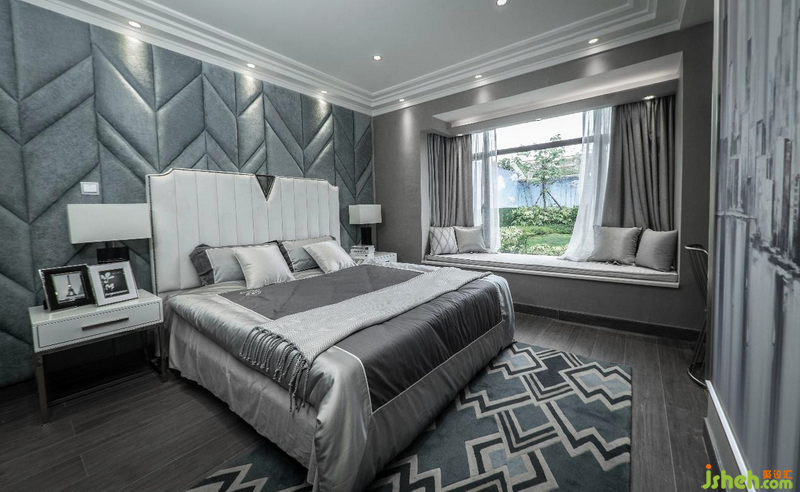 墨綠色幾何背景墻軟包與地毯,有種錯位卻能銜接的不規(guī)則美,靜雅高貴的守護者主臥的寧靜,閑暇時,坐在床邊欣賞窗外四季光景,落英又繽紛,生活之美,不過如此。