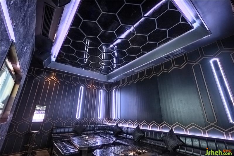 大廳酒吧區(qū)作為整體空間的設計重點,成為本案最重要的點睛之筆。除了空間多重疊加的功能性外,設計師還結合酒吧的音樂屬性,將跳動的音符做在墻面有節(jié)奏的豎形條上,將無形的音樂變成可視的圖形,搭配多維度智能感應燈光,使空間的視覺效果更加豐盈。酒吧與包房的墻面采用玻璃隔斷,以增強空間的互動感。。裝修公司