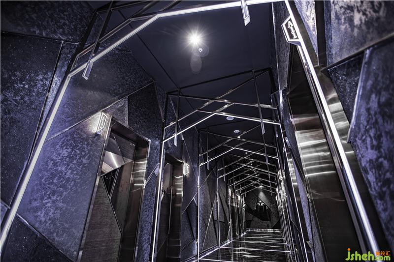 在色調上,以蔚藍色星空的色調營造靜謐氣氛,與幾何線條形成呼應,隨著空間之內線條的流動,從細節(jié)處彰顯空間的精致與細膩質感。無論是通道經(jīng)過陣列的“M”形燈架的光影效果,還是電梯廳內屹立于正前方的流水瀑布上的“M”元素結合3D投影的視覺效果,無處不體現(xiàn)高端與時尚。。裝修公司