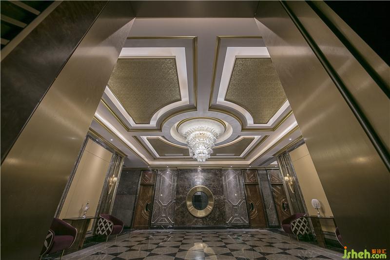 大量的金色裝飾及其線條體現(xiàn)空間的奢華,