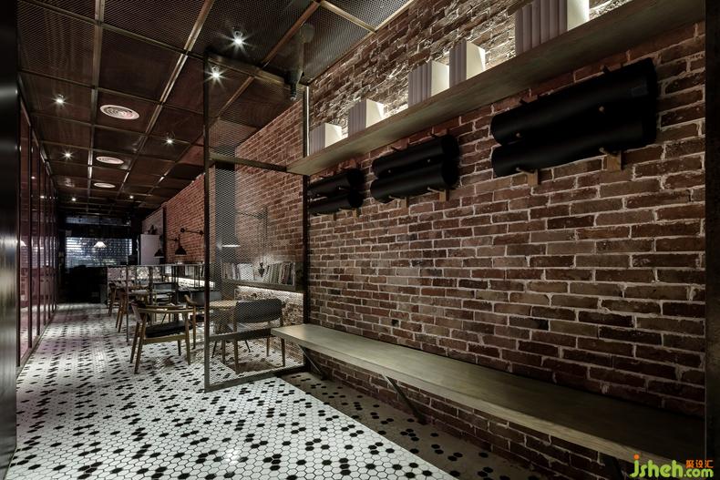 項目材料:百年紅磚熟鋼板彩色玻璃橡木瓷磚