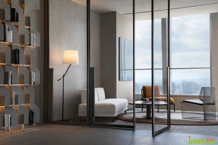 自然光在洽談間玻璃門窗的平衡與穩(wěn)定之下進(jìn)入,